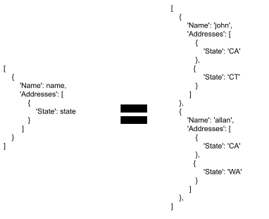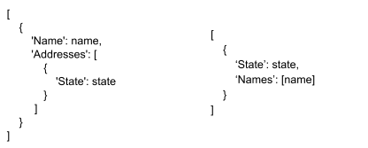 First, when we write data transformations as equations, the structure of our code matches the structure of our data—indeed, our “code” is essentially a template whose structure matches the data. For our names-and-states example, our code would consist of the two data structures