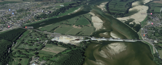 The picture is of parallel path of the Loire where its crossed by the Pont de Varades bridge. The main flow of the river is just East of this picture, off to the left: