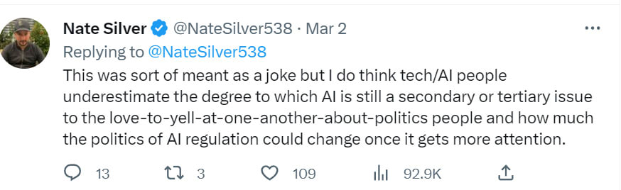 From February 25, I missed it last week: A piece from Noah Smith on the culture of ‘techies’ working on AI in central San Francisco. It’s… entirely unsurprising in every detail.