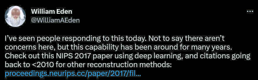 Many are using AI chatbots for therapy, as you would expect. Some obvious issues, but lots of advantages, always available and the price is right. Presumably most of them are using raw ChatGPT prompts, or very minimal prompt engineering and context storage. A relatively small amount of scaffolding work to generate good prompt engineering, including good context storage, would probably result in a large improvement. Fine tuning would be even better. I keep getting tempted to start building things, imagine if I actually was a decent software engineer and wasn’t so busy.