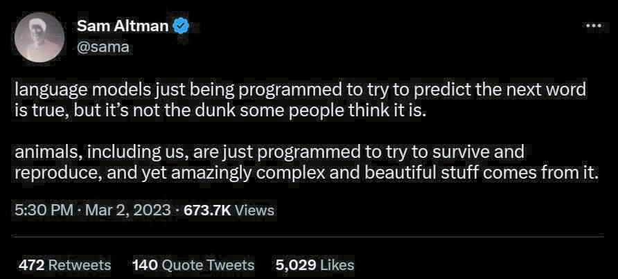 Welcome to week three of the AI era. Another long week and another giant post. I intend to take a nice four-day vacation in Mexico starting today, during which I won’t do any writing. I’m sure the pace of things will slow down real soon now. I mean, they have to. Don’t they?