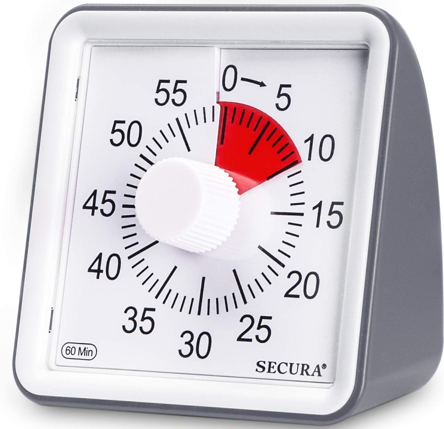 So after struggling with the google timer for a while, I went on Amazon and bought this physical timer. It completely solved all those aversions for me. It takes a flick to set it, I can easily see how much time is left with the blink of an eye, and when it goes off it beeps for three seconds and then stops. This is the perfect length to make sure I hear it, but not long enough to be annoying. It has a quiet/​loud switch, so if I’m listening to music with headphones I can switch it to loud and still hear it. It’s also perfect to use when co-working, because then everyone stays synced and there is mutual knowledge that the official work time is over, without me having to personally interrupt them.