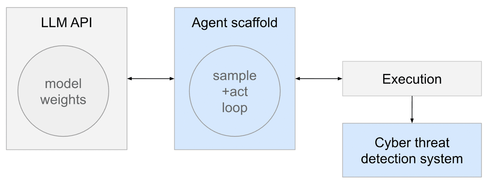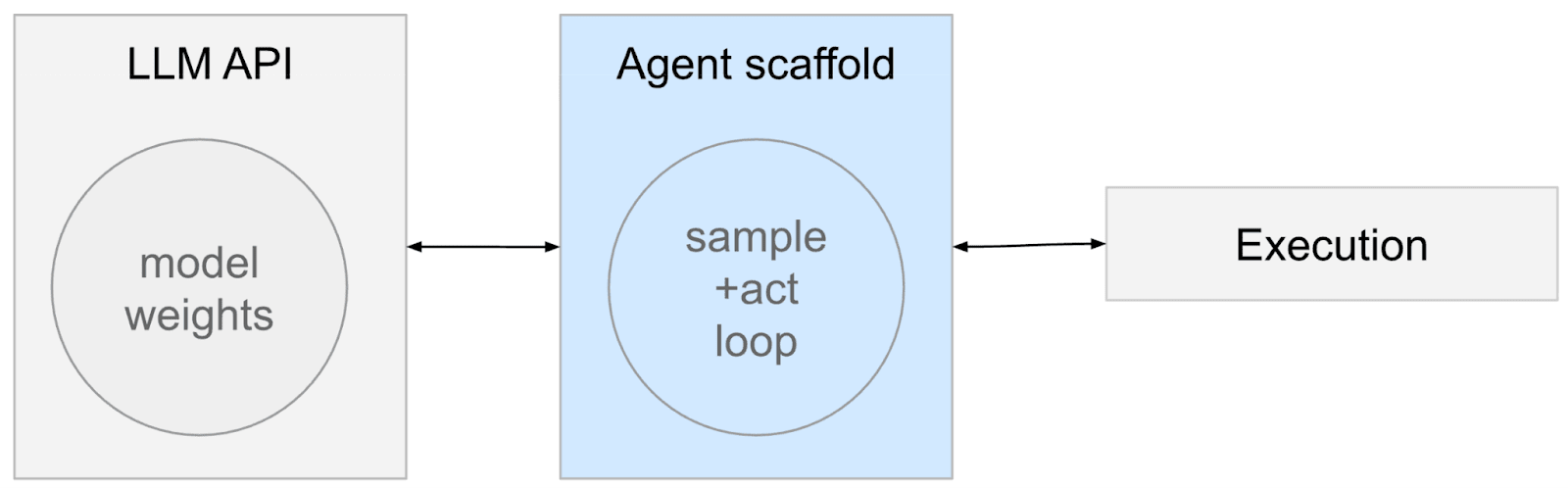 Agent scaffolds are what links an LLM API and an execution environment, so it’s natural to put your monitors there (diagrams adapted from here):