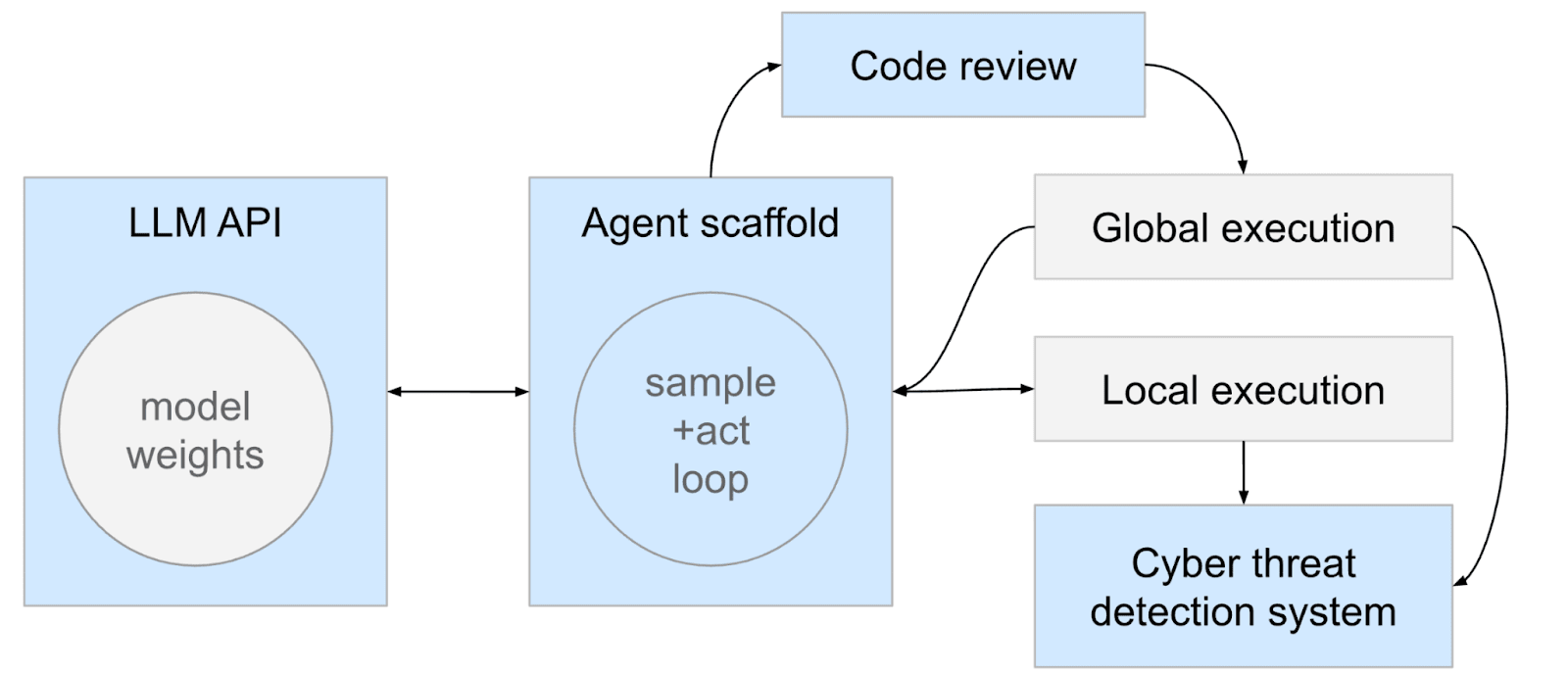 Execution context. The LLM API does not know where actions will be executed by default. Maybe they will be executed in a secure sandbox or won’t be executed at all—or maybe they will be executed in a very sensitive environment. (In some cases, we might actively prefer the AI to not know some facts about the security properties of the system where its code will be run.) This also means it is harder to implement fine-grained policies.
