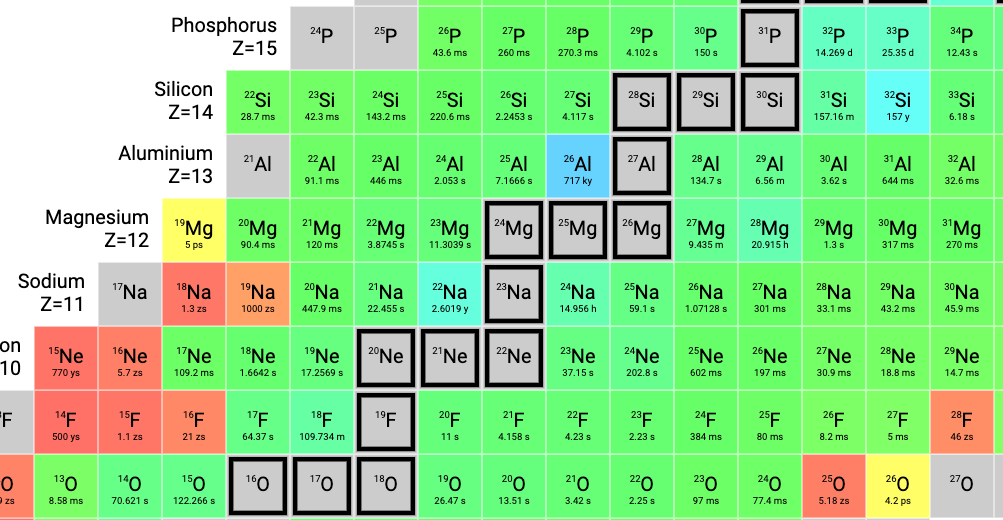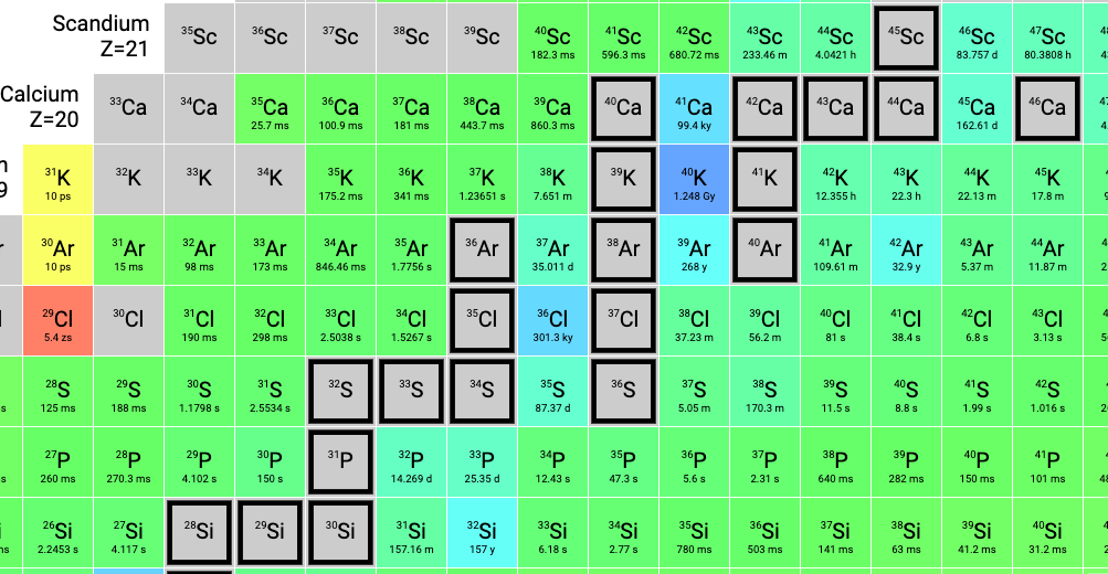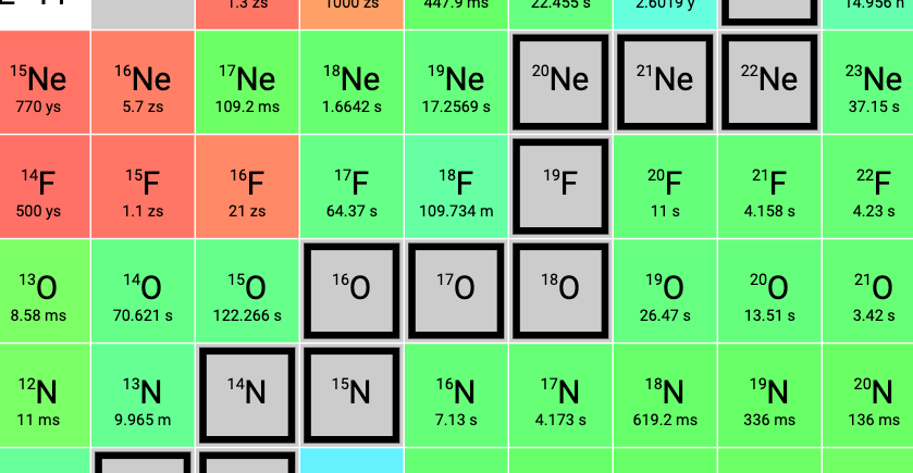 Here’s the table zoomed out to show all of the nuclides that have been observed: