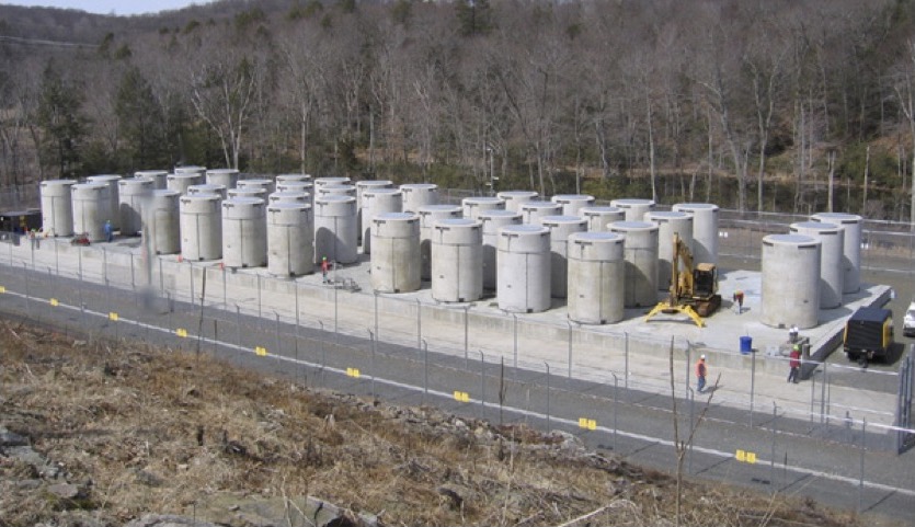 In fact, all of the waste produced by all of the ~100 or so nuclear reactors in the US is currently safely stored onsite, above ground, in concrete casks. You can go right up to them and hug them: