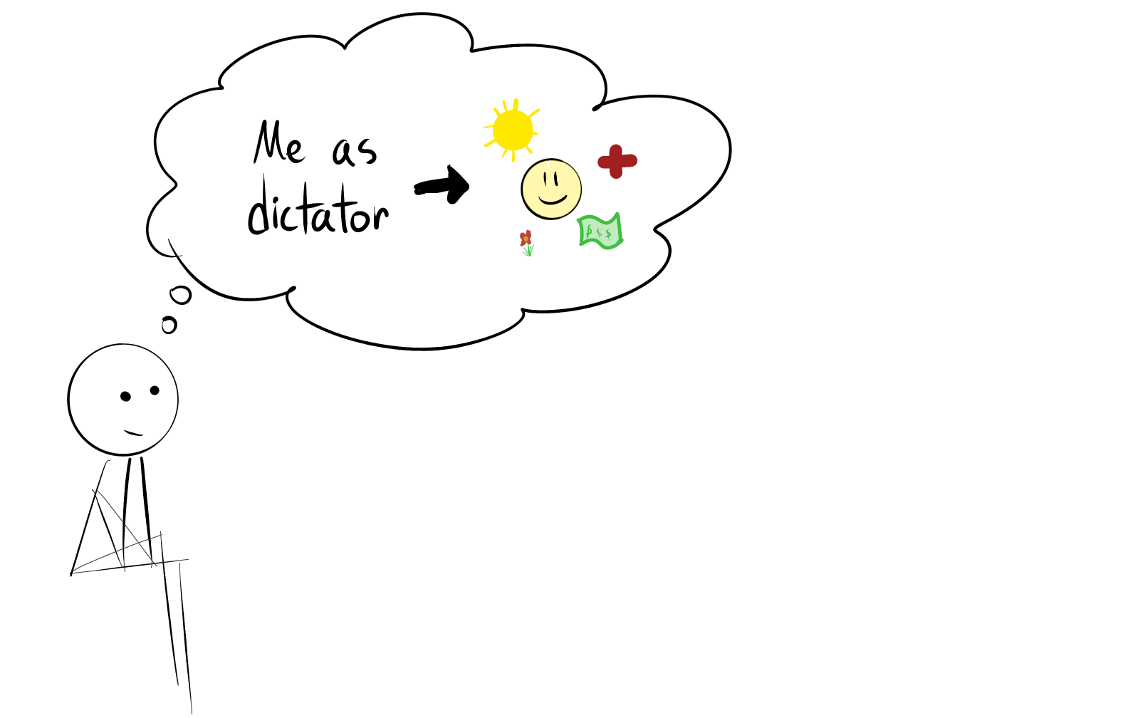 You run a country. One day, you think “I could help so many more people if I set all the rules… and I could make this happen”. As far as you can tell, this is the real reason you want to set the rules – you want to help people, and you think you’d do a good job.