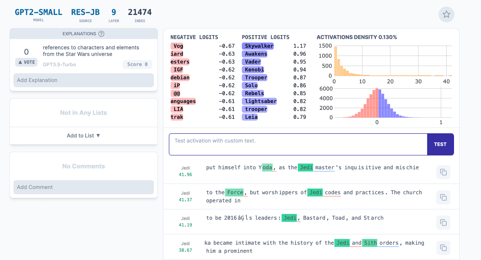 The rest of this post goes into more detail about Neuronpedia, including simple demos. We highly recommend going to Neuronpedia and interacting with it.
