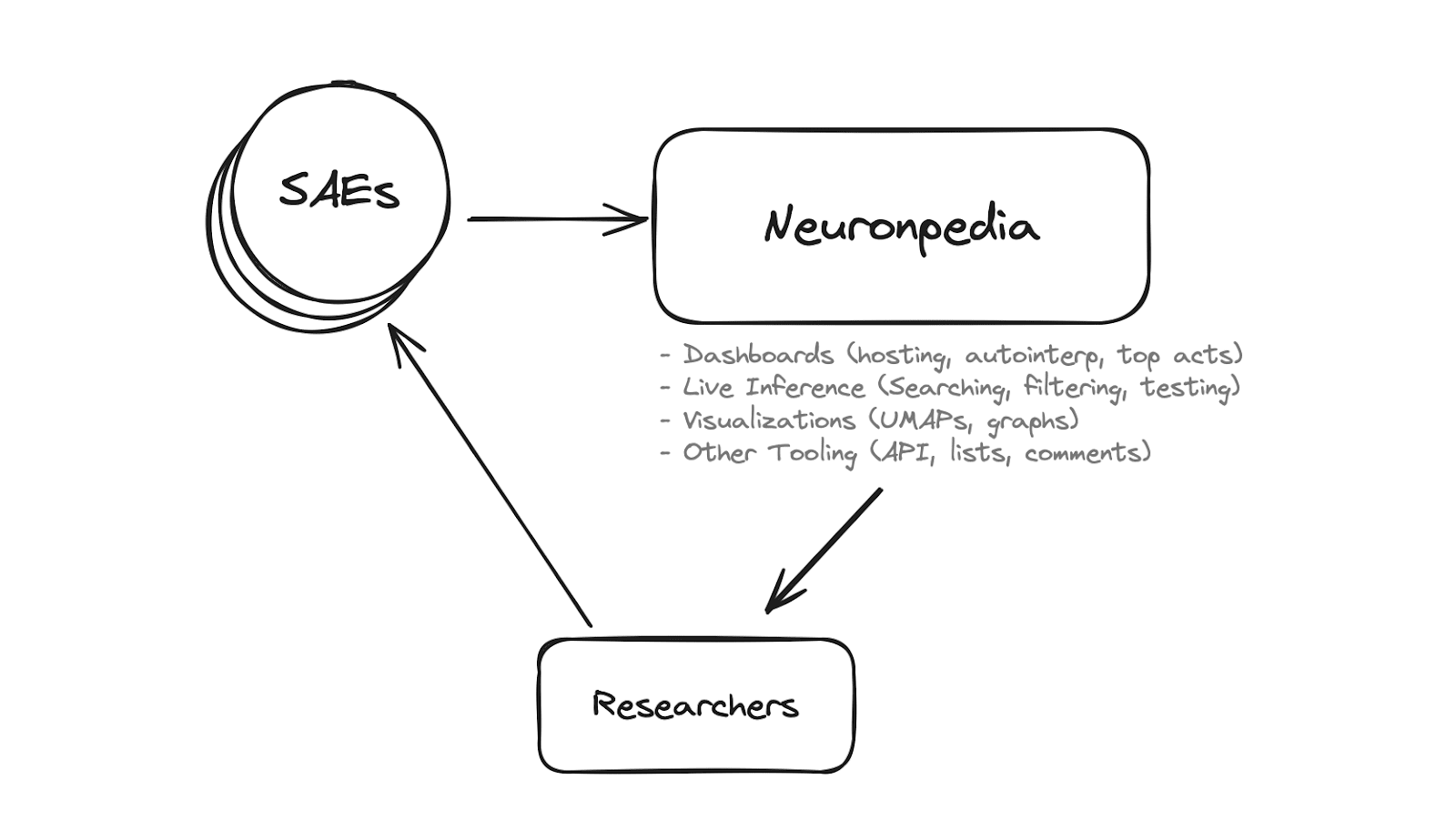 We want to clarify that Neuronpedia is not an AI safety organization. Right now, we’re experimenting with the idea that Neuronpedia can meaningfully accelerate valuable research and are focused on testing this hypothesis as robustly as possible. However, if and when it makes sense, we may try to be more ambitious.