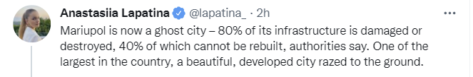 Russia definitely seems to be playing the cartoon villain role in Mariupol in particular, this coming after what was already widespread devastation and civilian casualties.