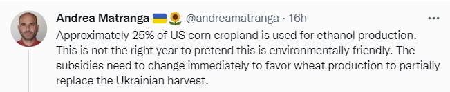 Another option of course is to use the corn as corn if the problem persists. It still means corn rather than wheat and logistics might get tricky, but substitution is a thing. There should still be time for a while.
