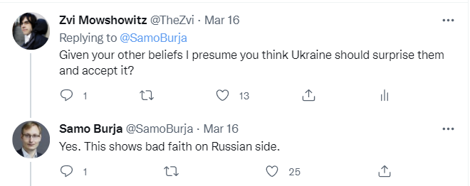 Samo Burja has been the primary plausibly objective advocate I know about for Russia’s military being competent and for the expectation of a Russian victory, and the only one to back up this claim with a lot of detailed information, as well as predictions that Western sanctions would backfire. He has adjusted to what has happened somewhat but mostly he has stuck to his guns, a few days ago continuing to put a 70% chance of Russia capturing Kyiv and the majority of Ukrainian territory by Day 50, including a (small) bet on this at 50% odds.