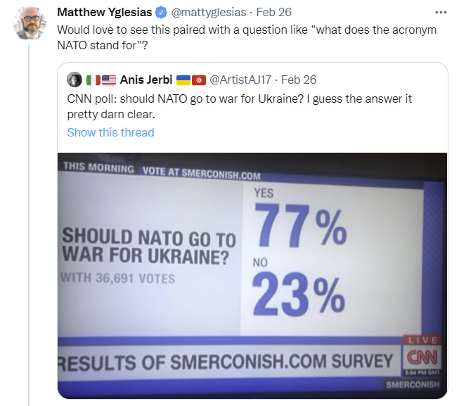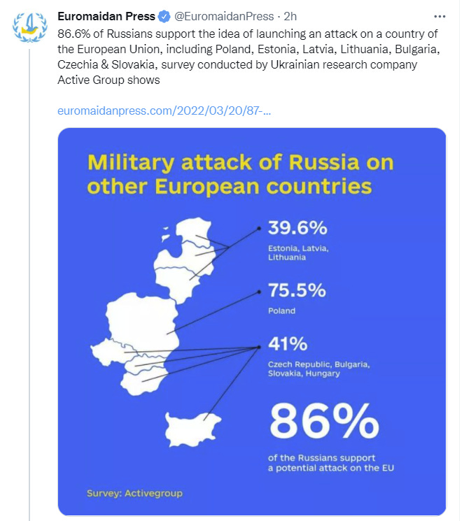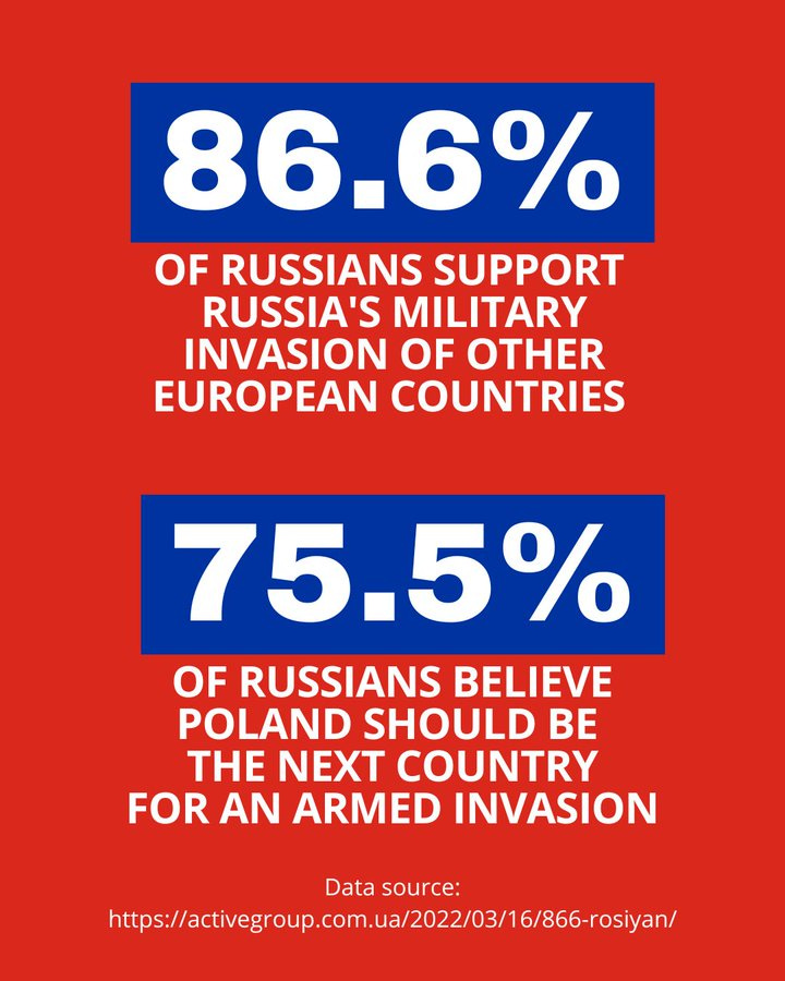What does it mean to ‘support’ such a move? Presumably not that we would honor Article 5 based on an attack on Polish troops that are on Ukrainian territory, that’s not how ‘we don’t want to escalate this into a war with the United States’ works. But what happens when Russia responds to troop deployments by striking inside Poland, a country that (see Good Use of Polling section) a majority of Russians claim they want to invade?
