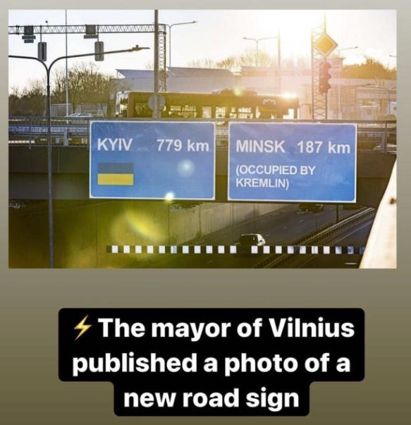 New road signs in Lithuania.