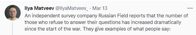 Famous predictor of the end of history but also insightful political historian, Francis Fukuyama, predicts the near-term end of the Russian invasion in military defeat. Another source asks ‘is Russia going to lose?’ which is disheartening since the answer to headline questions is always no, but the post is optimistic. If you haven’t seen it, this is Kamil’s thesis on why Russia will lose, and his central thread of threads presents his very detailed, very gears-based model of Russia – I don’t fully buy it or anything, but it got strong affirmations all around and clearly has a lot of true and important stuff in it.