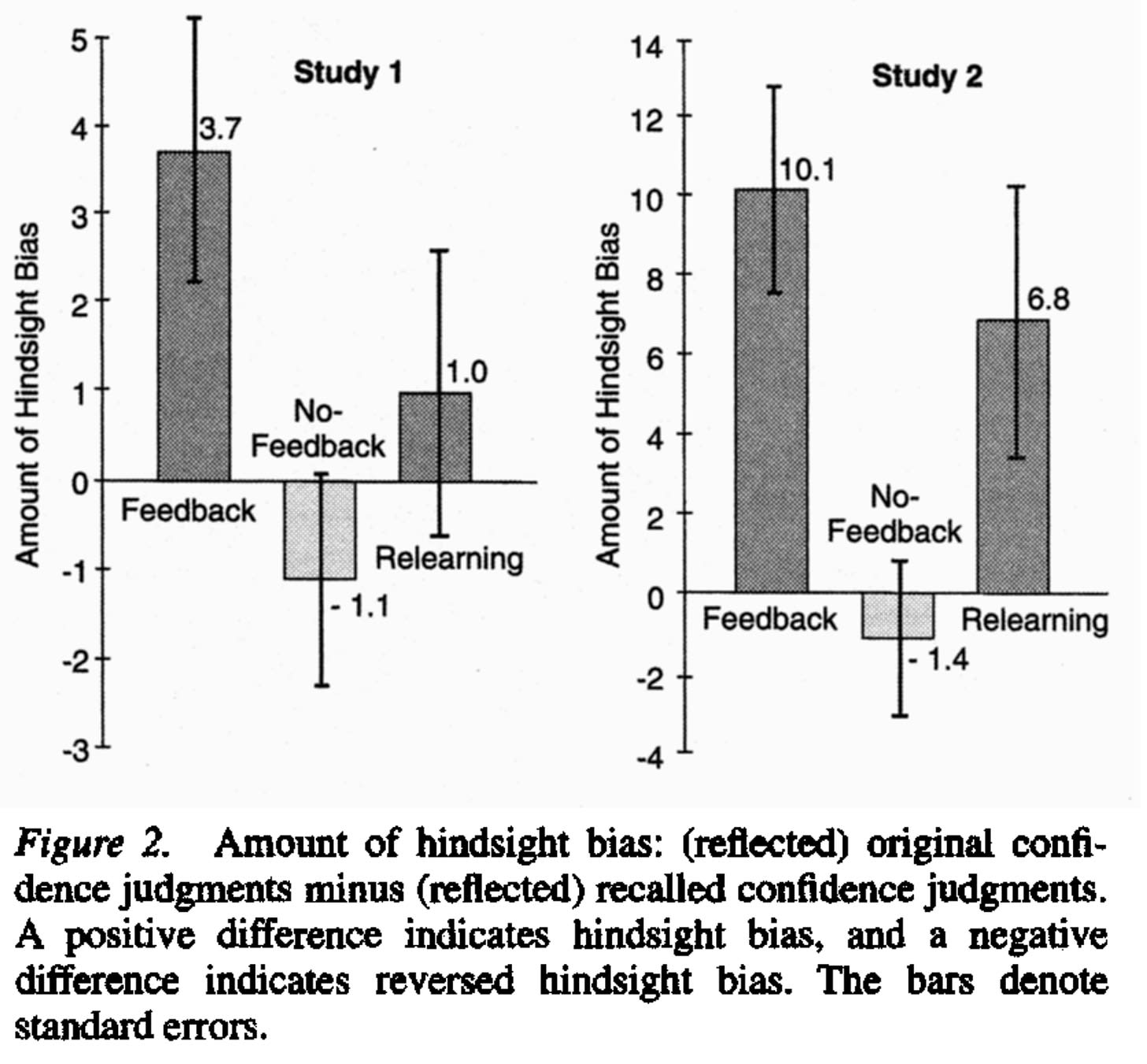 For a concrete example, here are the results from Hoffrage et al. 2000—the relevant condition is the “Feedback” condition, with positive values indicating a positive hindsight shift: