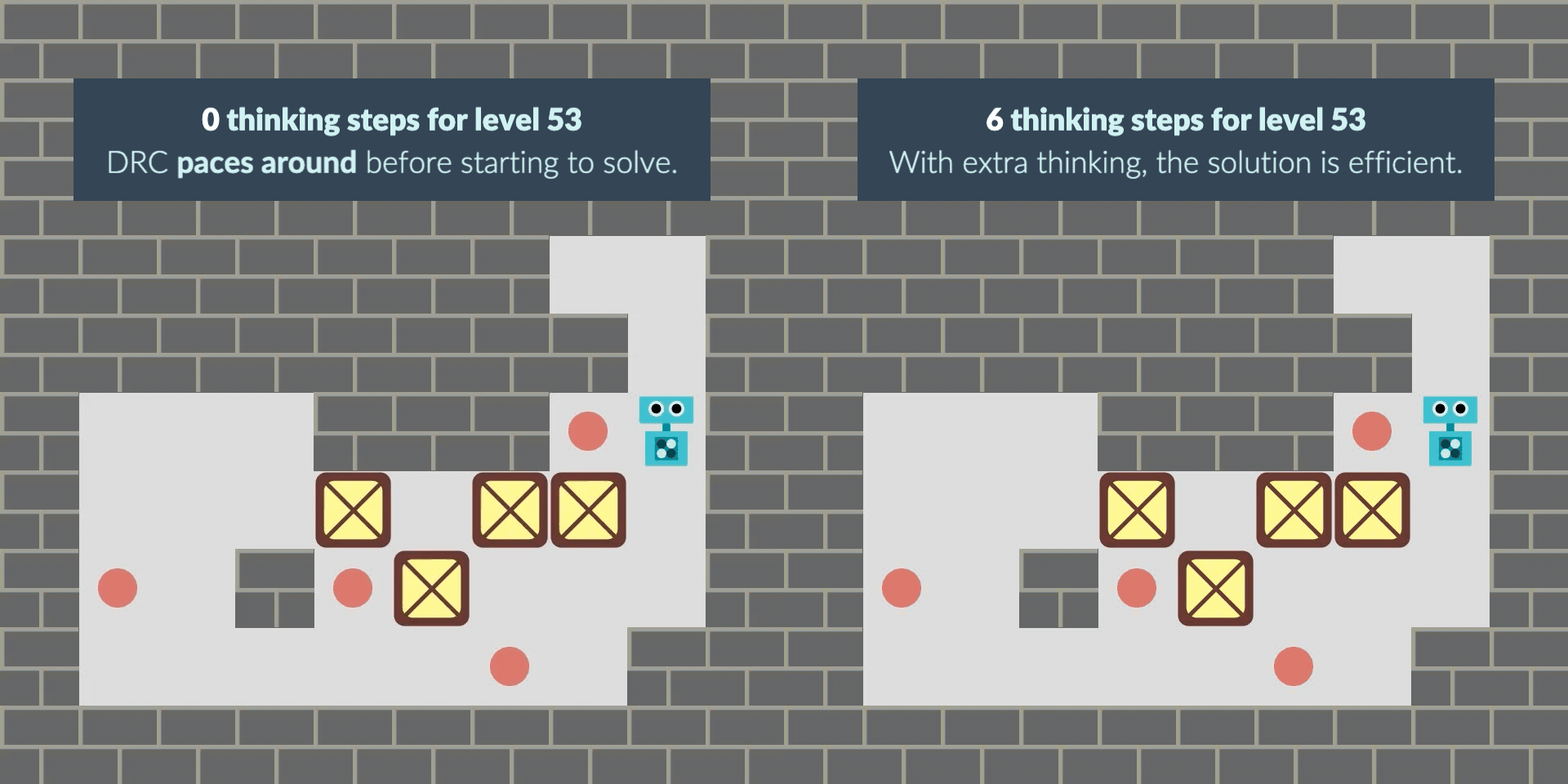 We investigate this “planning effect” in a black-box way. We find that often, the RNN learns to “pace” before attempting to solve the level, likely to get more computation and find a solution. When we give the RNN time to think, it finds the solution in the extra thinking time and executes it straight away.