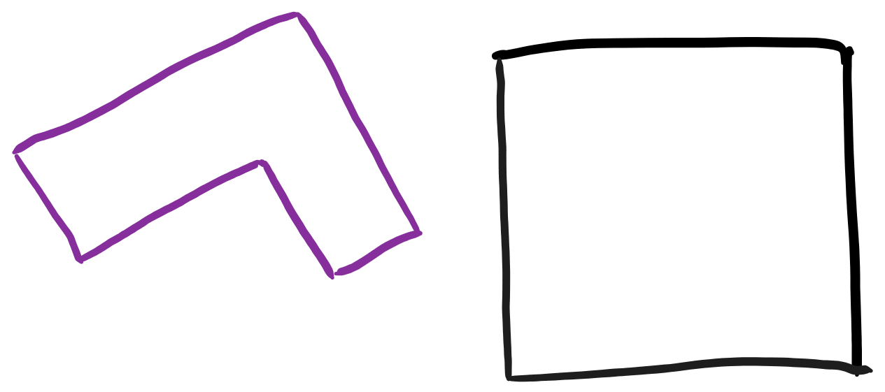 My notion of the “whole system” is inspired in part by Christopher Alexander’s books on architecture[1]. He discusses how buildings will be better if they are made in ways where they are as a whole, and in each part, sympathetic to and supportive of what already exists around them. Based on my understanding of that theory, here’s a cartoon of two ways you might look to add a purple building near an existing black building: