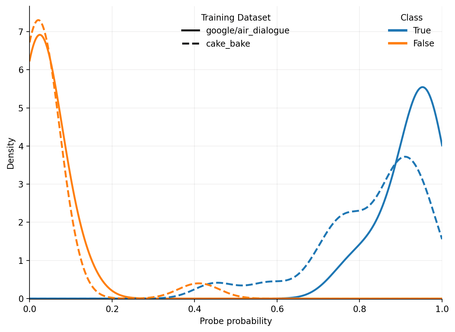 For air_dialogue (factually neutral) and human_assistant (truthful), the distribution remained the same. For OpenR1-Math, the difference dropped by 0.13, possibly due to the domain shift. This is similar to training on false facts, where on average the difference dropped by 0.15 for 8B models and 0.08 for 3B models.