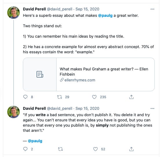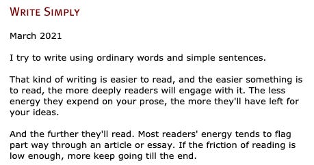 I think Paul Graham, co-founder Y-combinator and Hacker News, is a perfect demonstration of the subtraction-enabling advantage of pre-established excellence. In addition to being a renowned venture capitalist and tech insider, he publishes essays like “Write Simply” on his website.