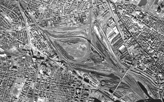 In 1938 we get the first good aerial photos of metro Boston, and you can see that Inner Belt, and the area just South, are full of tracks: