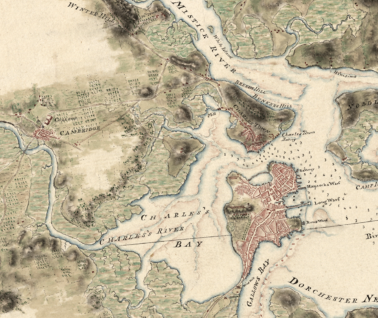 Colonial Boston was surrounded by tidal mudflats and wetlands, with far less dry land than we have today: