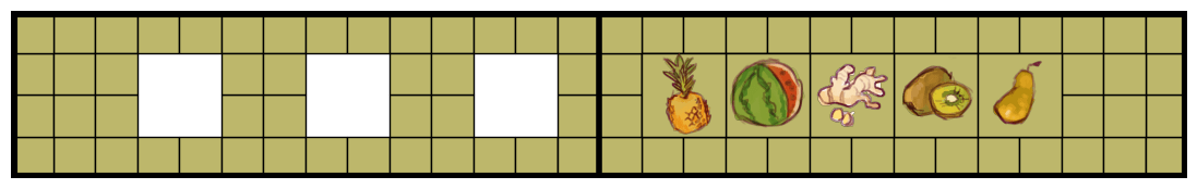 Hm, that’s wrong! The answer is {"Pineapple", "Ginger", "Pear"}. Then again, there are some good ideas in the completion, namely the basic setup of the problem being correctly summarized and the pictures identified. Now, it is not so surprising that vision transformers are bad at grids, so let us grant the error about the hole locations. But the model also doesn’t understand the symmetry; that a hole further to the left reveals objects further to the right, which is what the task wants to test in children.