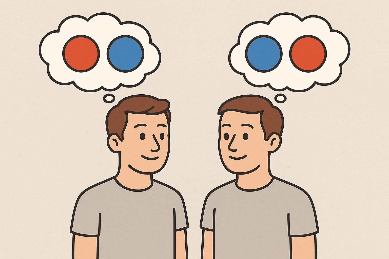 Imagine an experiment where Bob is subject to two stimuli, let’s say a blue light on the left and a red light on the right. Now, imagine a duplicate world inhabited by twin-Bob. Twin-Bob is an atom-by-atom duplicate of Bob with identical physical properties. His world contains exactly the same physics as Bob’s where blue wavelength light is short and red wavelength light is long, and they interact with the same cones in twin-Bob’s retina and activate the same regions of his visual cortex in the exact same way. There is just one crucial difference. Where Bob experiences a blue light on the left, twin-Bob experiences a red light on the left. All the physical facts are fixed but the phenomena are inverted. Unlike zombie-Bob, twin-Bob is not confused about his consciousness – he genuinely experiences something, it’s just different to Bob’s experience. This avoids the absurdity of zombies pondering their own non-existent qualia but still leaves a challenge for physicalism.