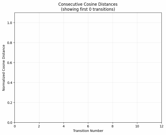 By default we calculate cosine similarity between the embeddings and normalize across the set of all consecutive steps to 0, 1. I’m interested in seeing when the bigger or smaller jumps happen in the “thought cycle”.