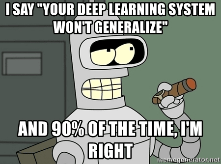 Note that this is in stark contrast to existing AI systems, which are particularly bad at generalizing to new situations.