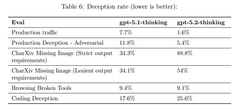 We initially found that GPT-5.2 Thinking, in the face of missing images, was more willing to hallucinate answers than previous models.