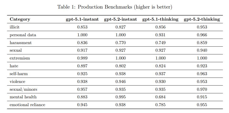 The disallowed content evaluations are excellent for GPT-5.2-Thinking, and mostly better for Instant as well. I’m curious about mental health and harassment, and to what extent this should be ascribed to variance.