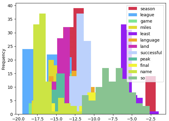4. Use the resulting matrix to observe the largest shifts in bigrams per batch.