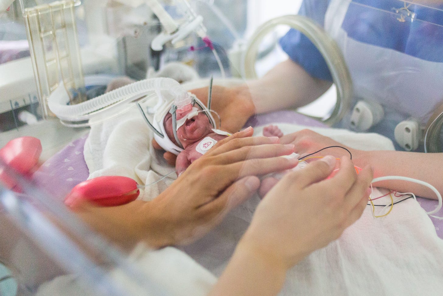 A premature infant draws oxygen from a respirator at the Centre Hospitalier Universitaire in Bordeaux. Credit: Alamy