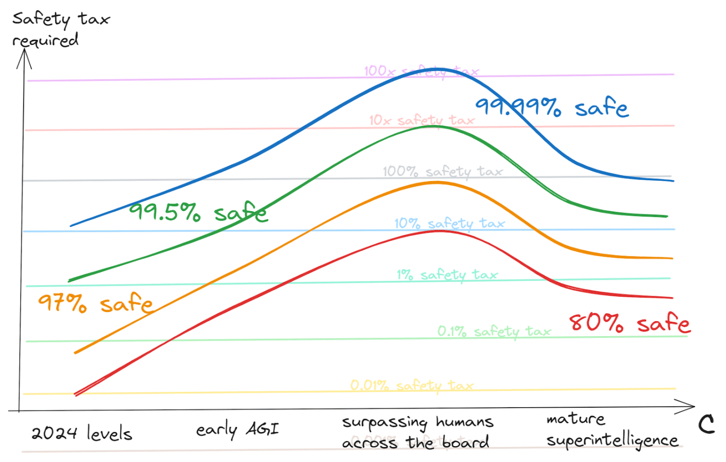 • By the time we’re getting towards strong superintelligence, the required safety tax has probably gone down