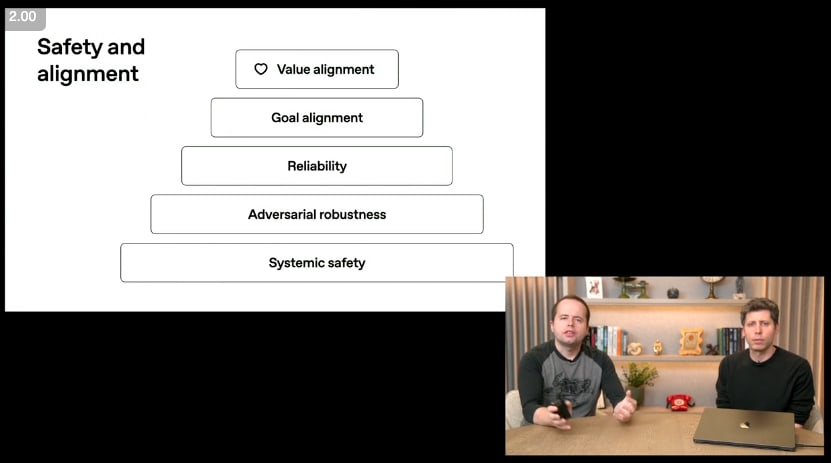 What we believe is the most important long-term safety question for superintelligence is value alignment. What does the AI fundamentally care about? Can it adhere to higher level principles. What will it do when given unclear and conflicting objectives. Does it love humanity. The reason we believe that this high level objectives or principles driving the AI are so important is that as we get to systems that are thinking for very long, as they become very smart, as they tackle problems that are at the edge or beyond human ability, really getting to complete specifications becomes quite difficult. And so we have to rely on this deeper alignment.