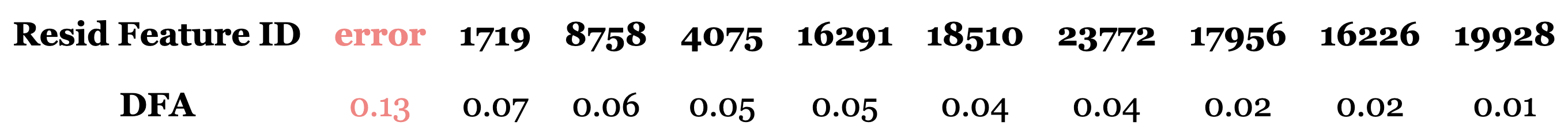 Our recursive DFA technique fails to go back through MLP nonlinearities. We believe this can be addressed with techniques which we describe in future work.