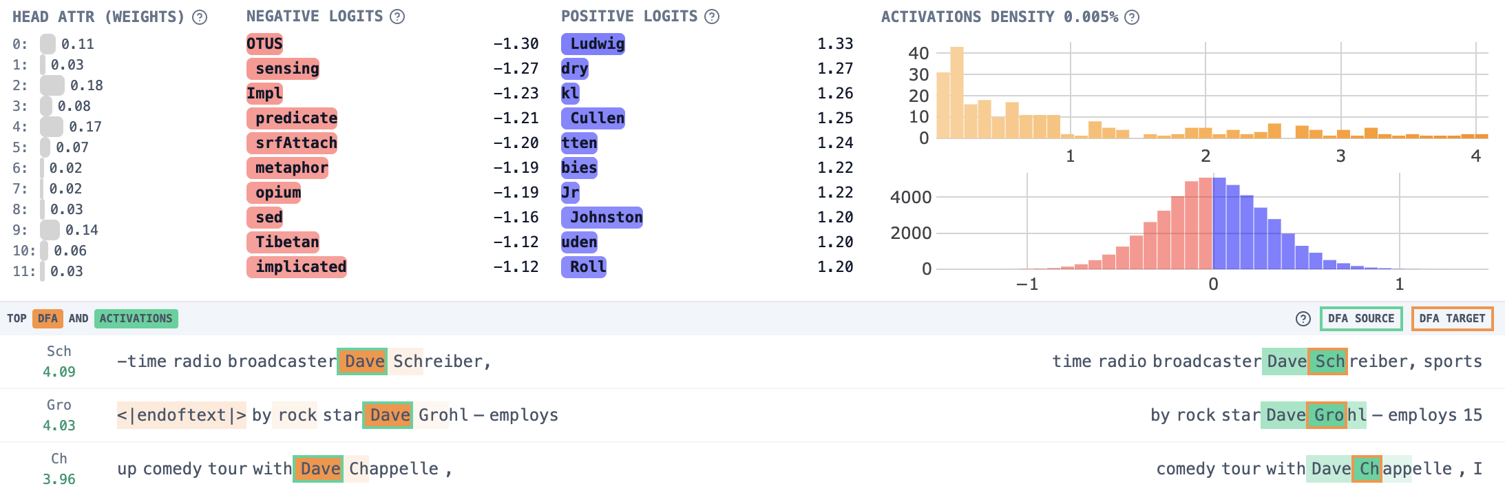 It’s a “Dave” feature! In fact, it is an “I follow Dave” feature which is even more interesting. We can see from this chain of observations using the tool that the model is routing information about “Dave” via the “is” token to the final “[isn]’t” position.