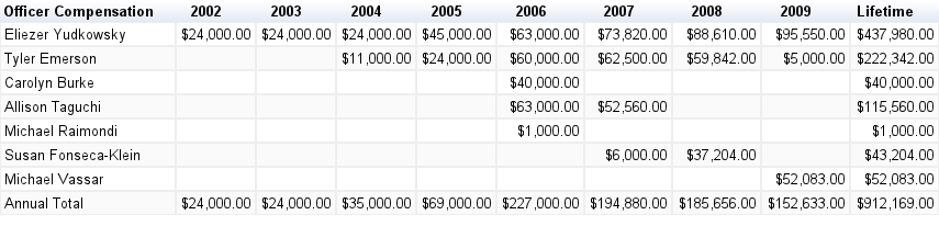 4/25/2011 - Corrected Yudkowsky compensation data.