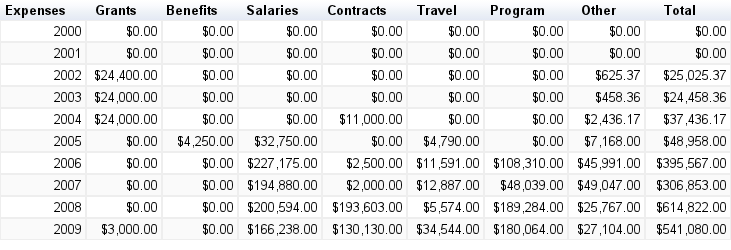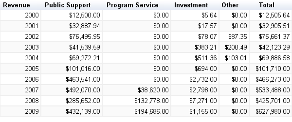 NOTE: Analysis here will be updated as people point out errors! I’ve tried to be accurate, but this is my first time looking at these (somewhat hairy) non-profit tax documents. Errors will be corrected as soon as I know of them! Please double check and criticize this work that it might improve.