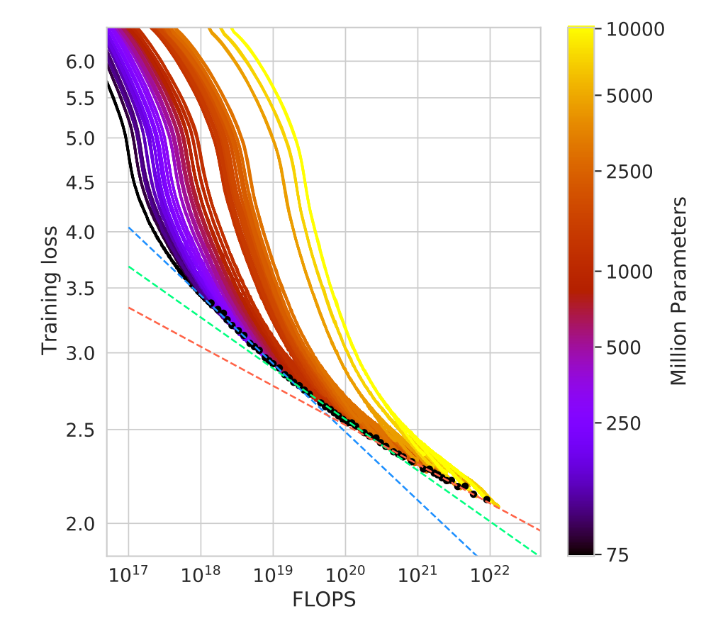 However, it seems to have been mostly unnoticed that the “scaling law” they found was generally different from the first one in Kaplan et al. Kaplan shows a “pure” power law: