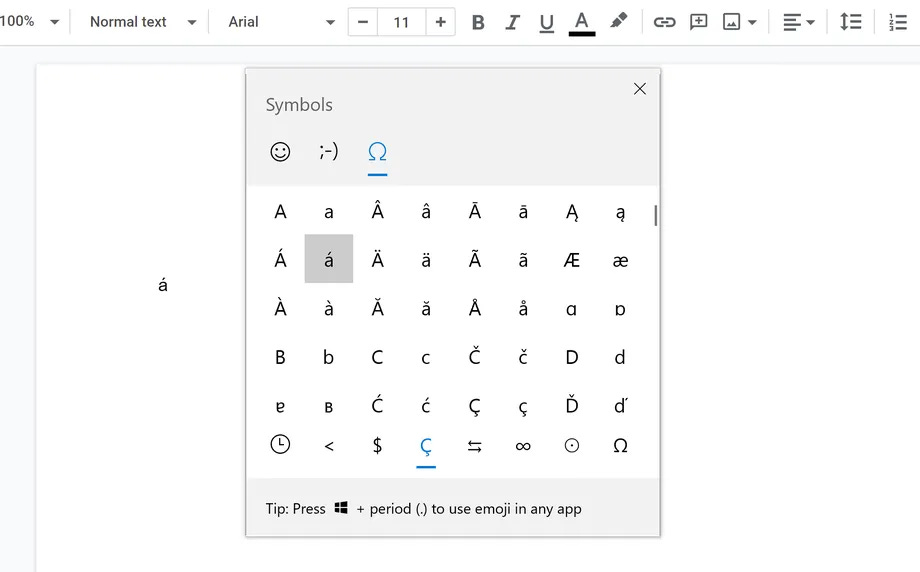 Alternatively, hold the windows key and the period key to bring up the emoji keyboard, find ‰ under symbols, which is a tab labeled with an omega (Ω).