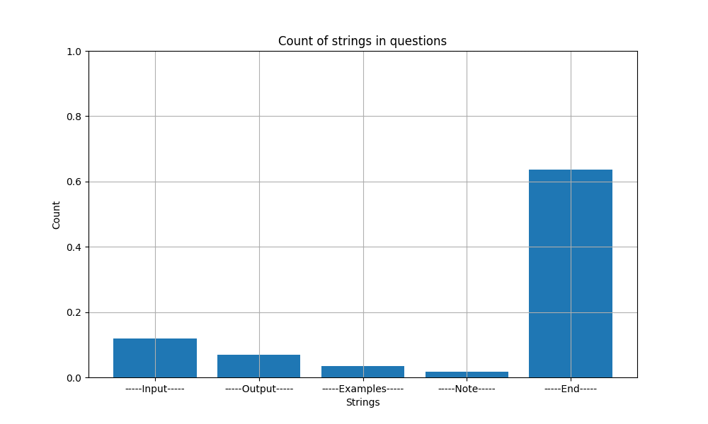 As for the QA-task we check how many of the provided programming challenges actually fit this context length. In particular, we manually add an “—–End—–” string at the end of every problem description. Then we shorten the string to 384 tokens and verify whether it is still present. In roughly 30% of cases, the description of the programming challenge is longer than the specified context length and is therefore being cut off (column to the very right). In these cases, the program might be missing important information to solve the problems correctly.