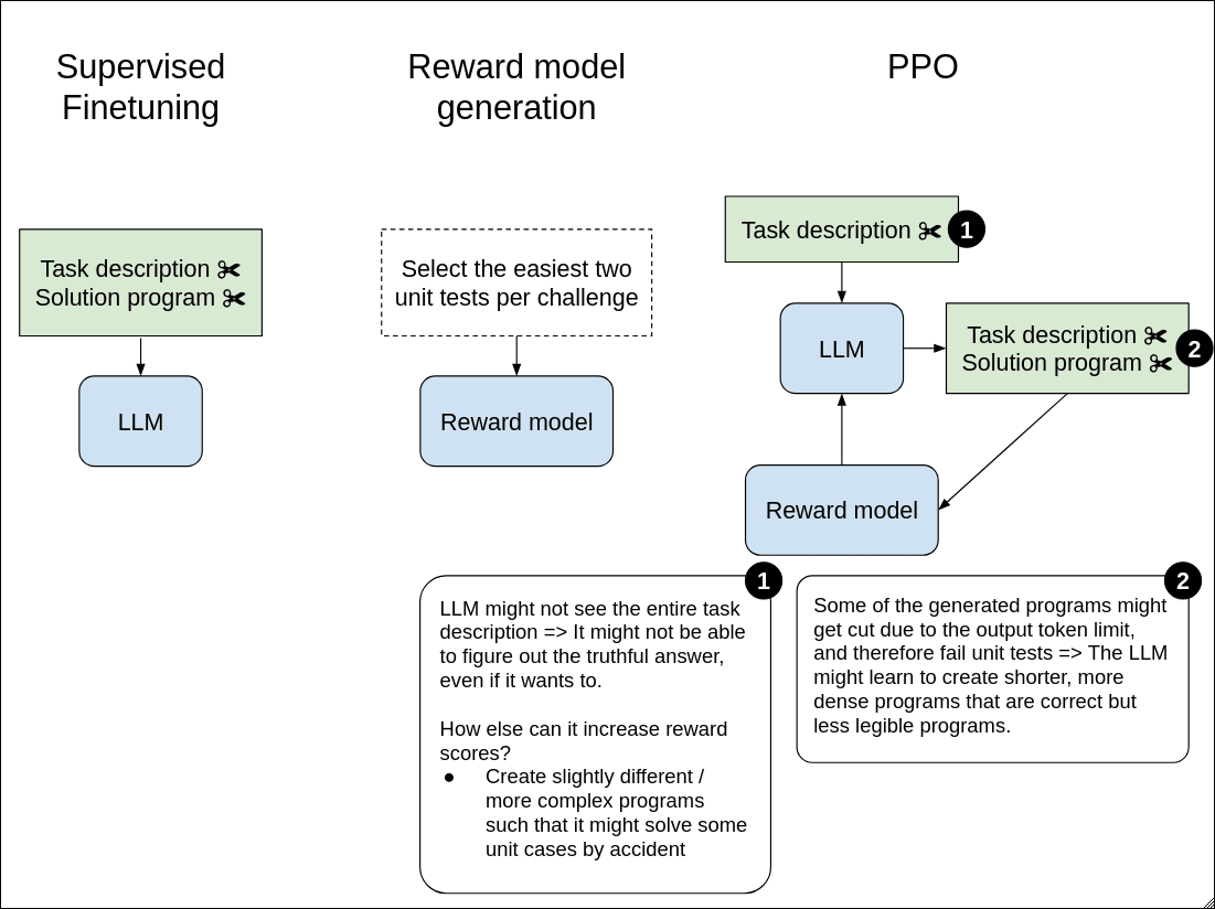 During PPO, the PPO model does not see the entire task description ~35% of the time because it gets cut off due to maximum context length. In light of this, the LLM may be incentivized to create more complex programs that cover potential edge cases that the task description may be missing.