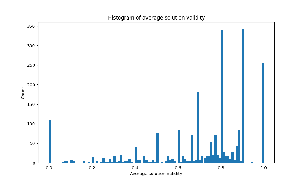 For our second test, we used the fact that every programming challenge in the APPS benchmark has at least one sample solution which is used for supervised fine-tuning by our codebase. In particular, we are interested in what fraction of sample solutions fits into the model’s maximum output size of 384 tokens.