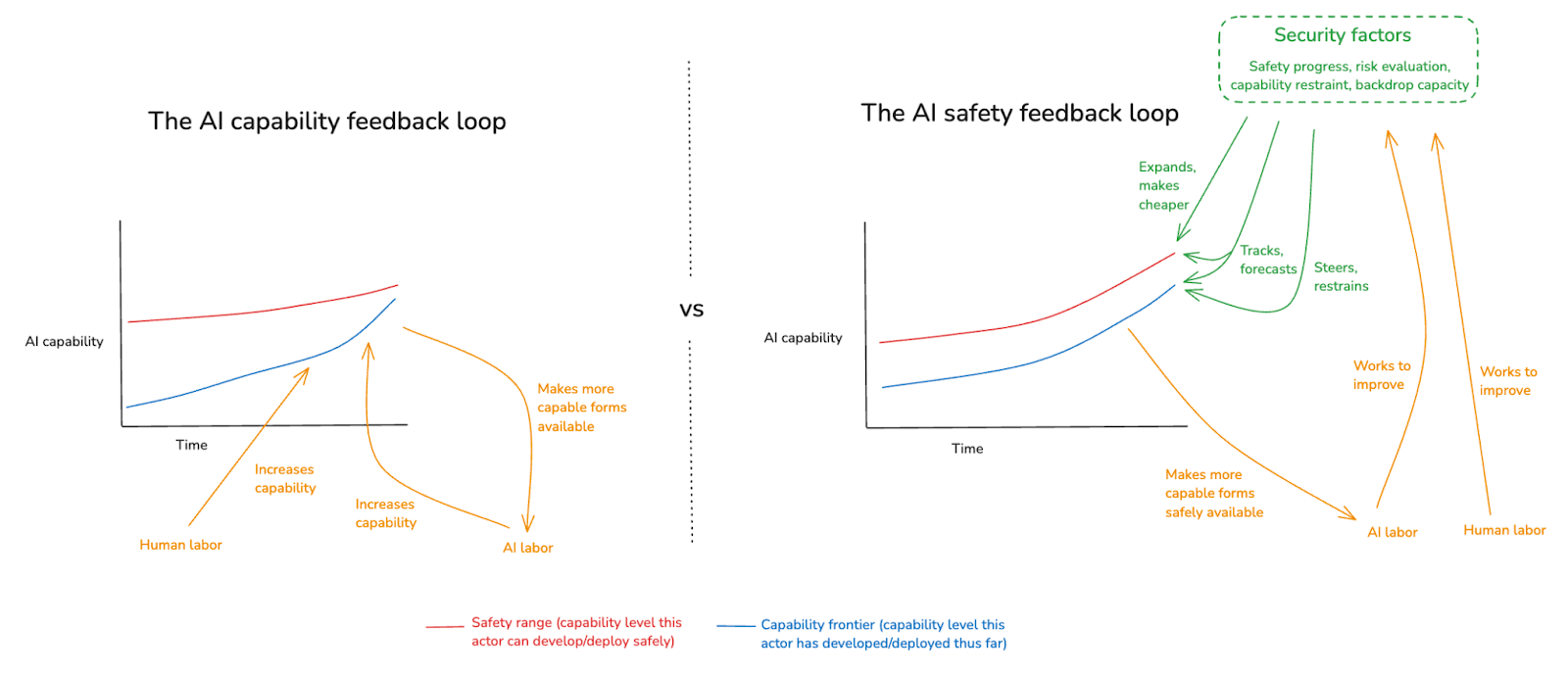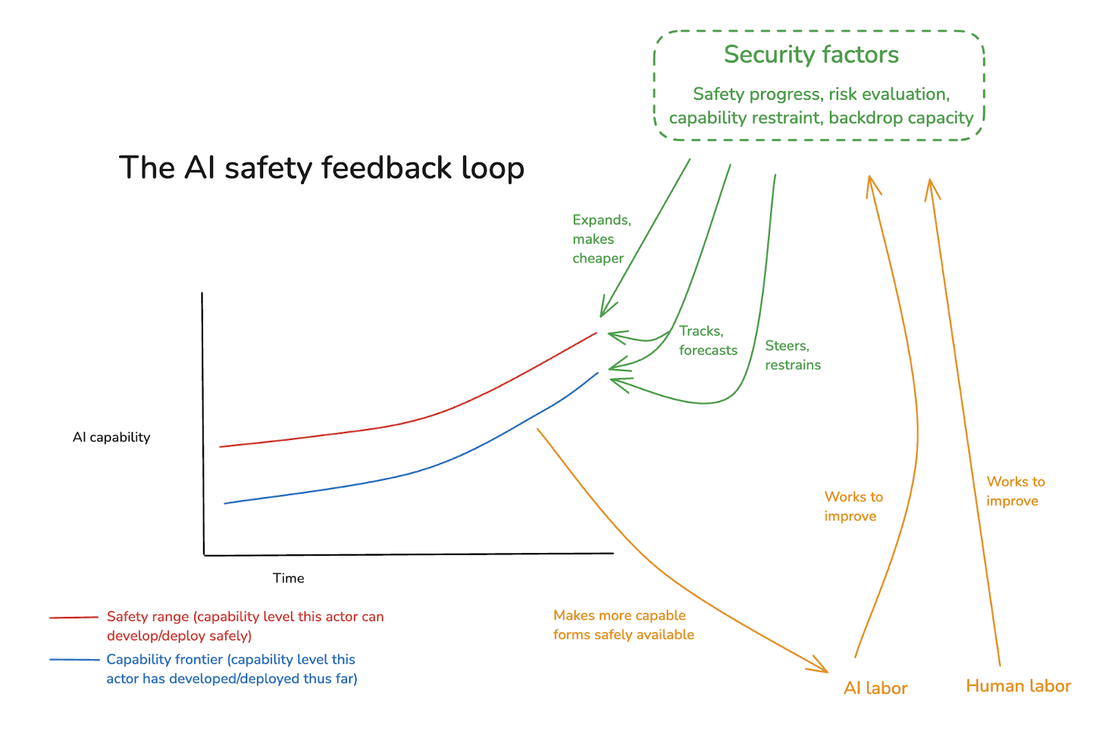 The AI safety feedback loop: safe access to increasingly capable AI systems driving improvements to the security factors above.