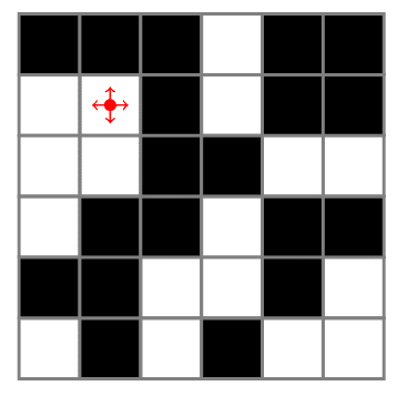 Imagine a 6-by-6 pixel environment where pixels can either be white or black. An agent can observe the full 36 pixels at once. It can move a cursor (represented by a red dot) up,down,left right one square at a time and knows where the cursor is. Apart from moving the cursor, it can take a single action which flips the colour of the square that the cursor is currently on (from white to black or black to white). An agent will be left to its own devices for 1 million timesteps and then will be given a score equal to the number of black pixels in the top half of the environment plus the number of white pixels in the bottom half. After that, the environment is reset to a random configuration with the cursor in the top left corner and the game is played again.