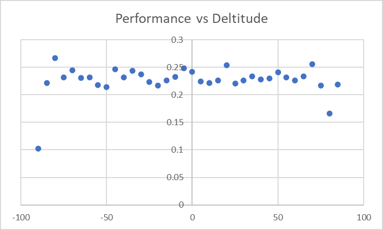 It looks like within ~35 degrees of the equator there is an abrupt cutoff to some sort of zone where performance is much worse. Looking more closely: