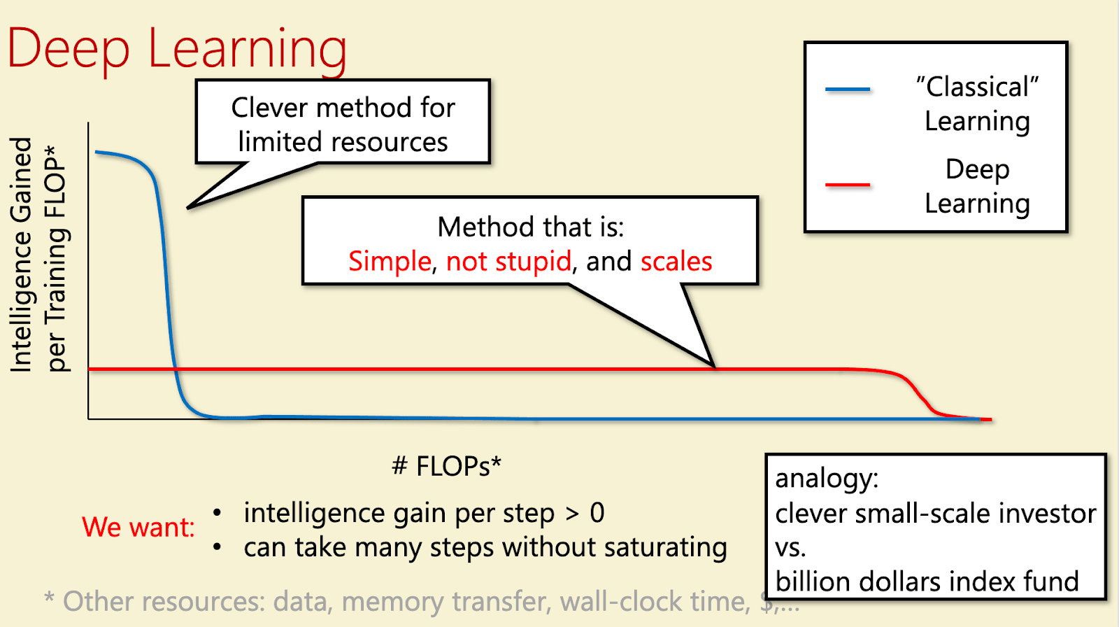 The methods which have succeeded in training modern LLMs have been those which can scale with more data and more compute. The successful approaches are not necessarily designed to make optimal use of available resources but can easily be extended to more and more resources without plateauing in performance. In brief, the predominant techniques are those which are simple, not stupid, and scale. This blog will explore modern machine learning architecture and training for text generation with a focus on why high-level design choices have been made and without delving deeply into technical details.