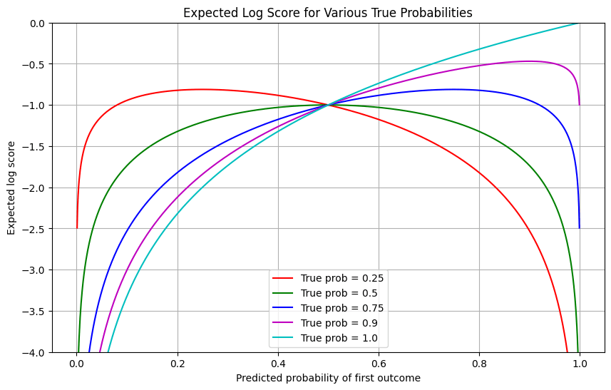 I think the tie-in to market-making, and other similar approaches like debate, is in interpreting the predictions. While the examples in this post were only for the two-outcome case, we would probably want predictions over orders of magnitude more outcomes for the higher informational density. Since evaluating distributions over a double digit number of outcomes already starts posing problems (sometimes even high single digits), a process to direct a decision maker’s attention is necessary.